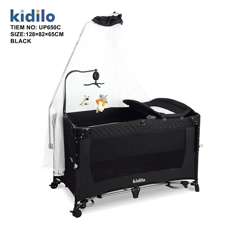 Kidilo Foldable Modern Newborn Travel Baby Portable Bedside Crib Bed 3 in 1 Luxury Set Mosquito Net for Babies UP650C