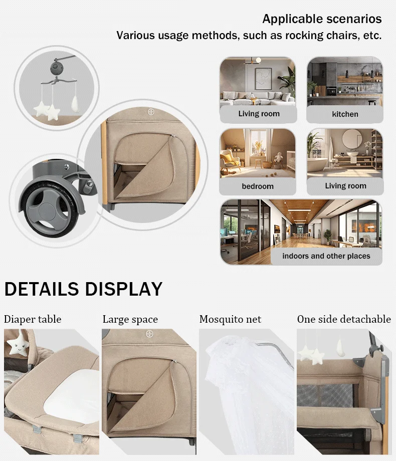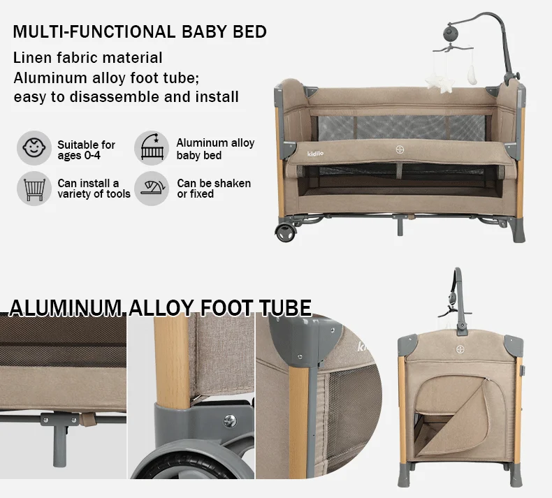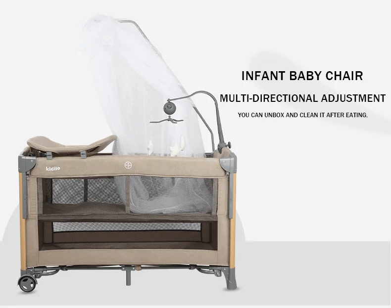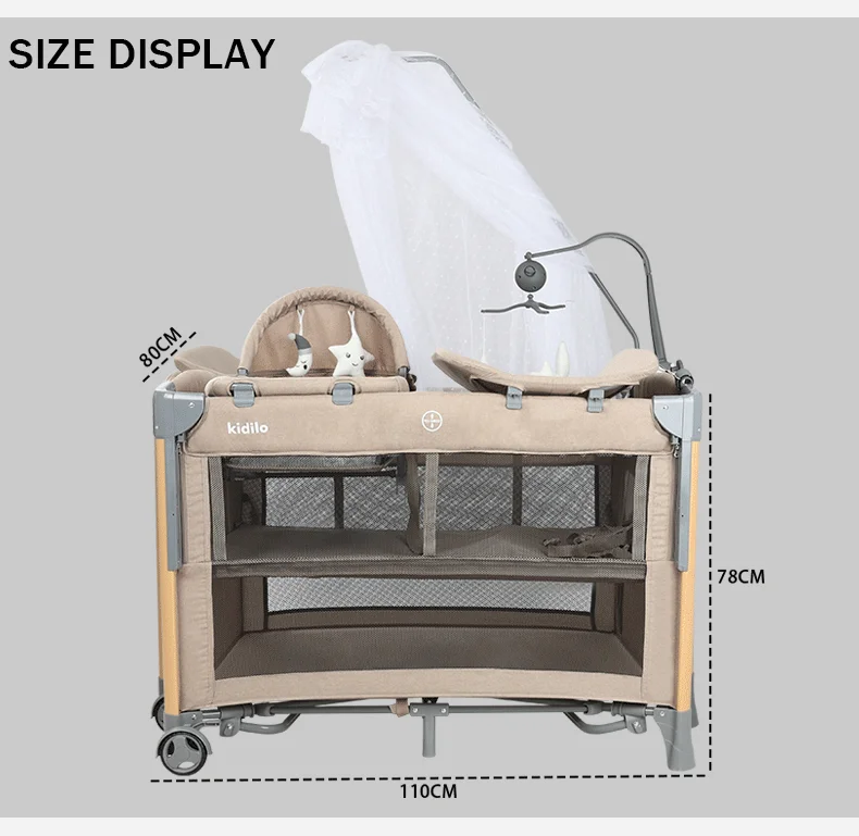Kidilo Luxury Bedside Crib Newborn Foldable Travel Play Baby Portable Bed 3 in 1 Set Modern Mosquito Net for Bedrooms T-703M