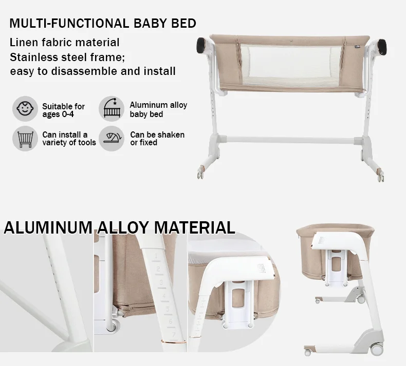Kidilo Luxury Convertible Bedside Crib Bed Foldable Modern Travel Portable for Newborns Luxury Mosquito Net Bedroom SG506