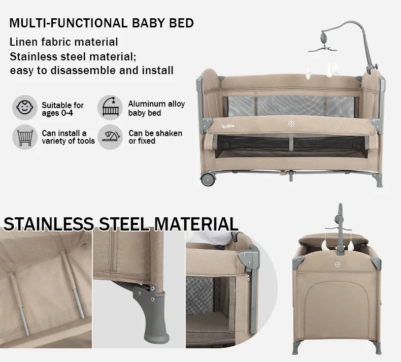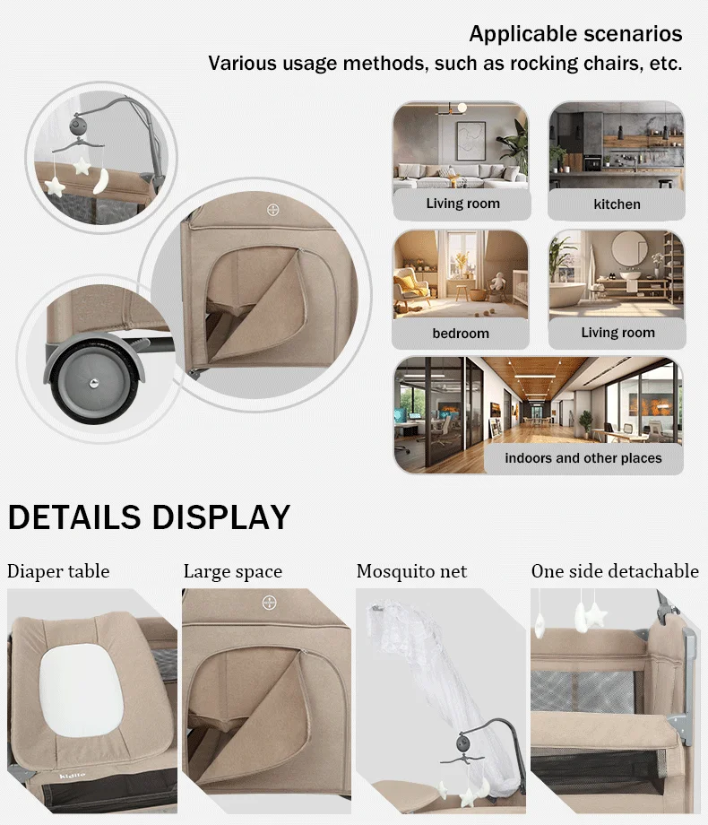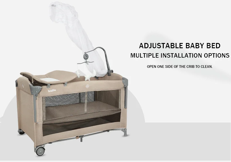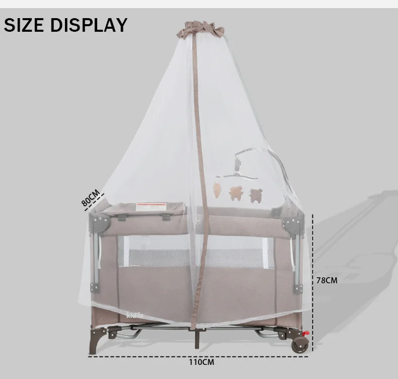 Kidilo Newborn Foldable Travel Play Baby Portable Convertible Bedside Crib Bed 3 in 1 Luxury Set Mosquito Net for Babies T-702L