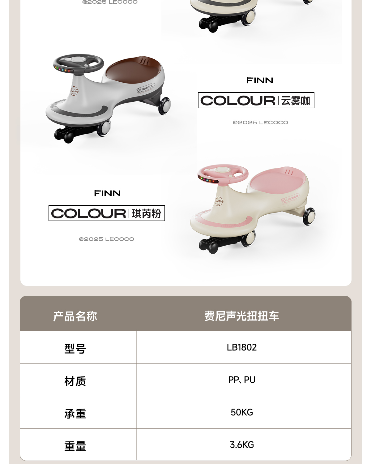 lecoco樂卡兒童扭扭車玩具溜溜車1-3歲寶寶搖擺車防側翻搖搖車