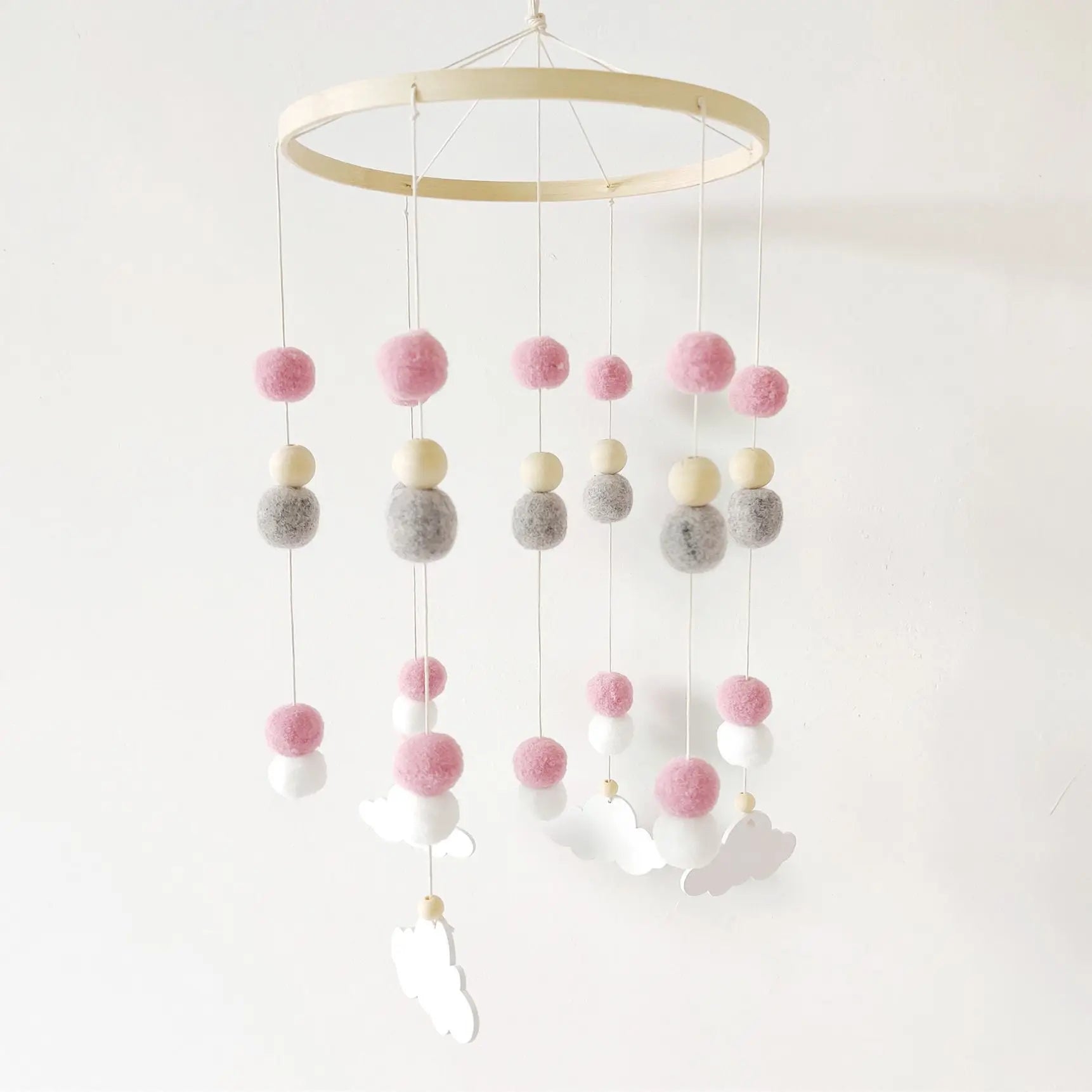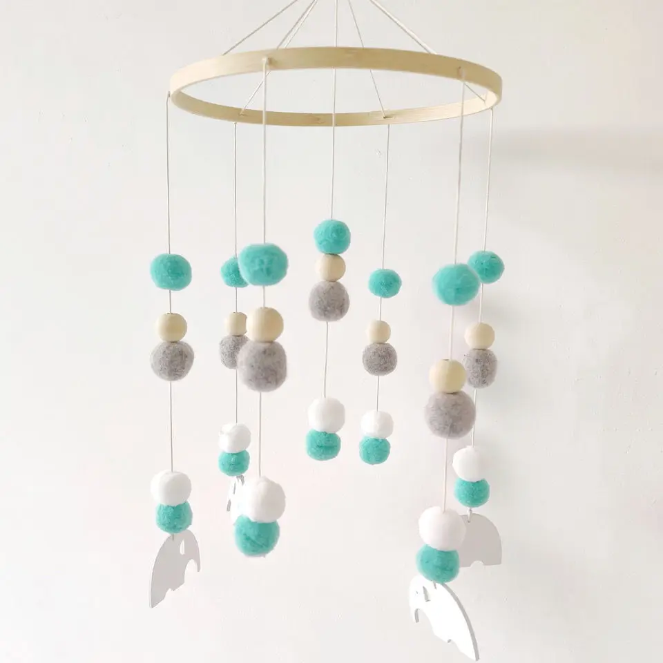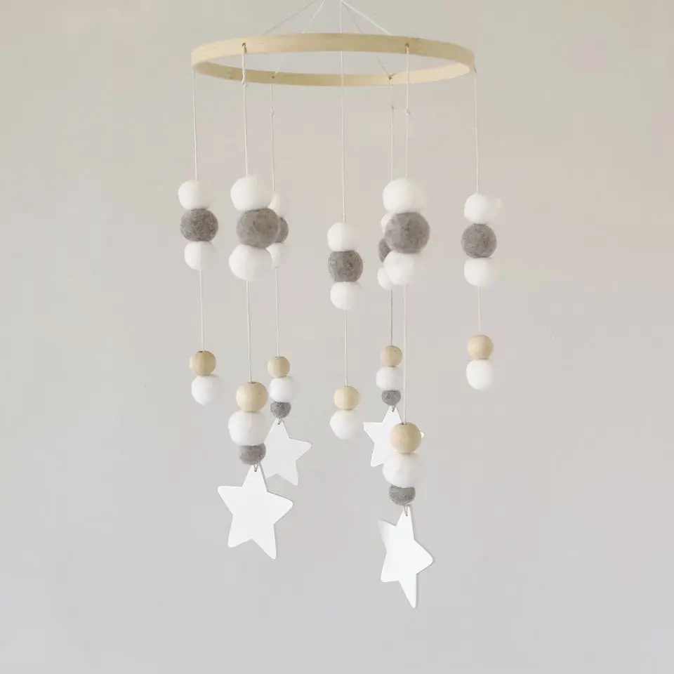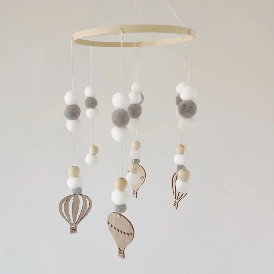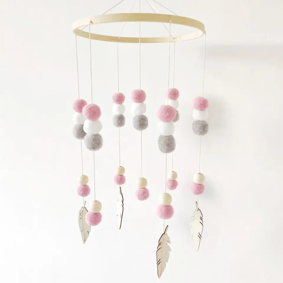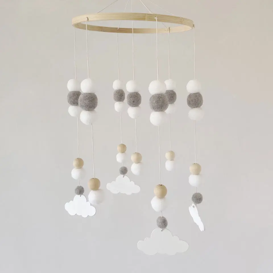 Mobile Wind Chime Hanging Toys Crib Bed Wood Musical Plush Custom Mobile Baby with Felt Balls Baby for Baby Unisex 2 to 4 Years