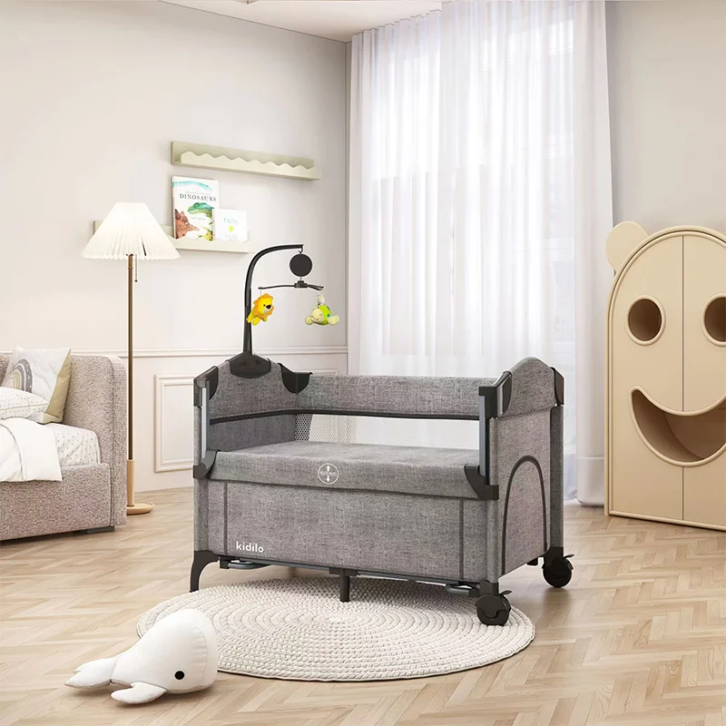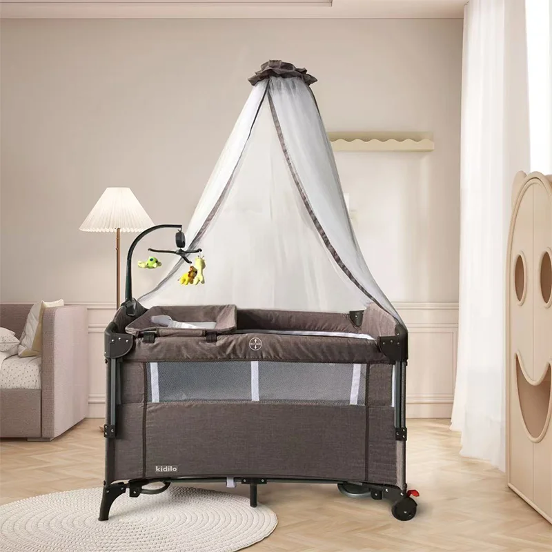 Newborn Foldable Portable Modern Kidilo Luxury Baby Crib, Convertible 3 in 1 Bedside Crib with Mosquito Net for Nursery P02