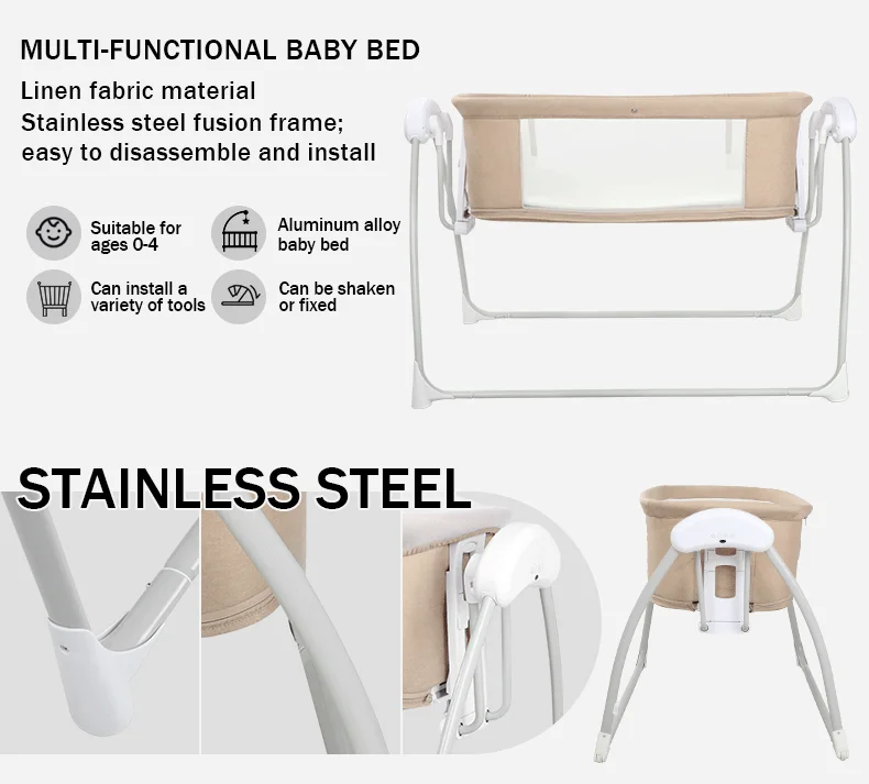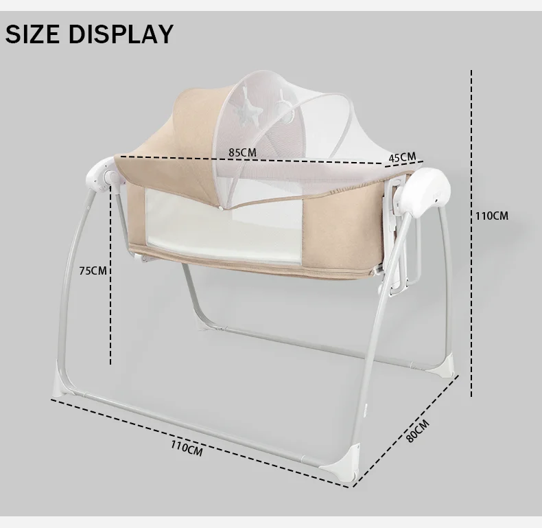 Newborn Foldable Portable Modern Kidilo Luxury Baby Crib, Convertible 3 in 1 Bedside Crib with Mosquito Net for Nursery SG219