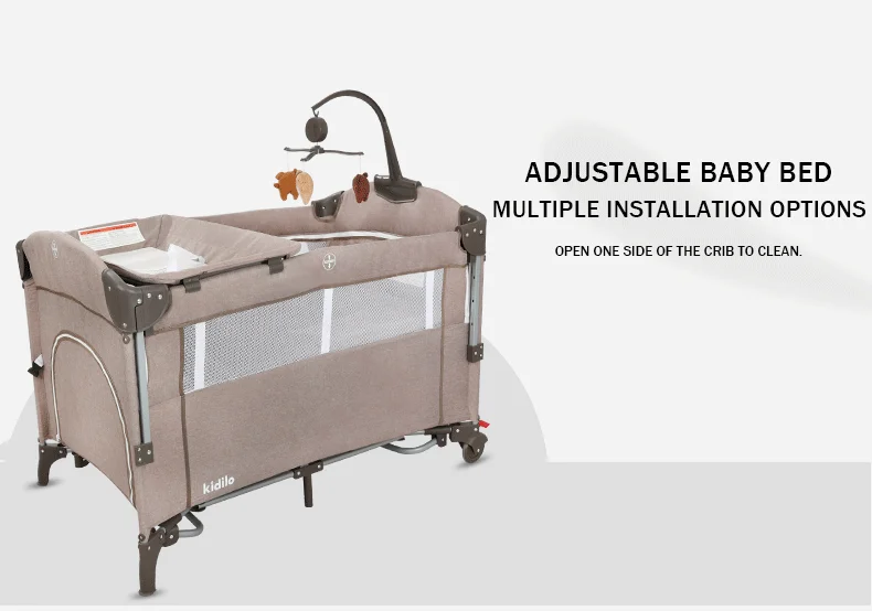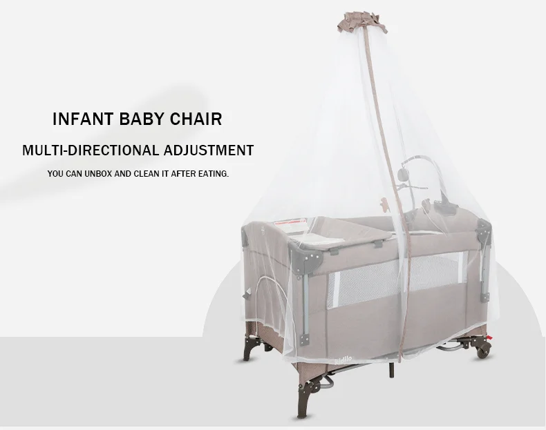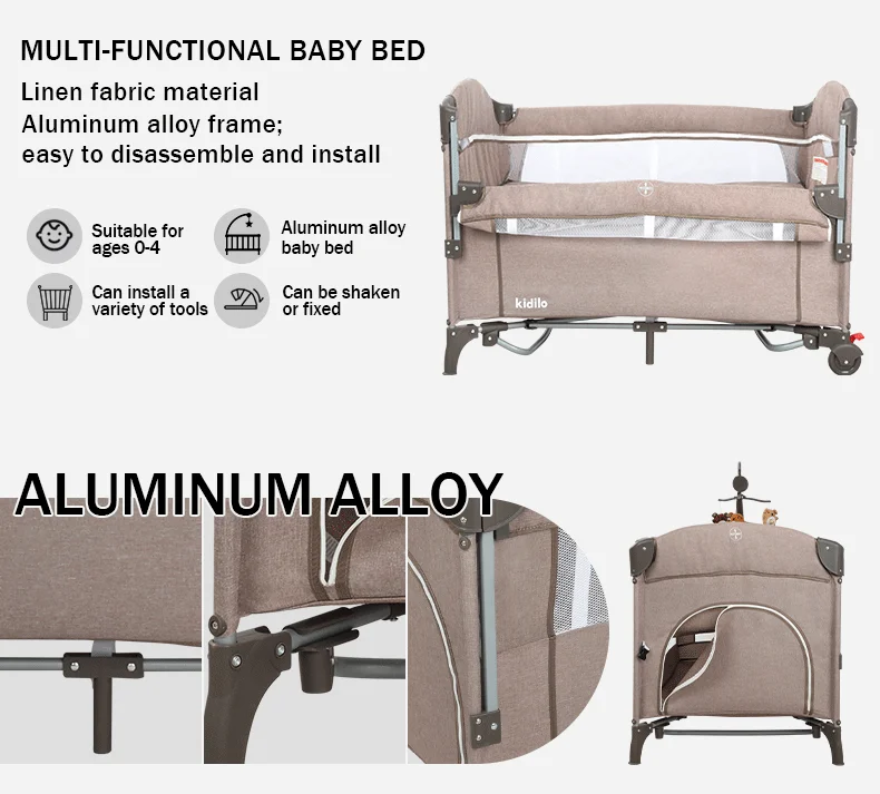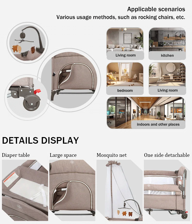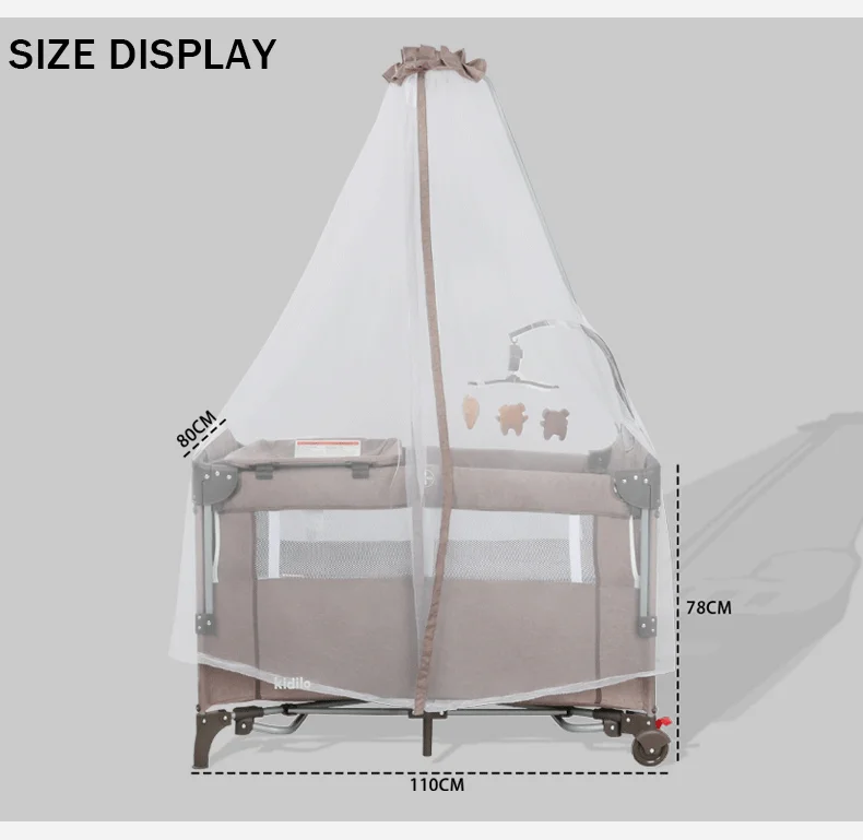 Newborn Foldable Portable Modern Kidilo Luxury Baby Crib, Convertible 3 in 1 Bedside Crib with Mosquito Net for Nursery T-703L