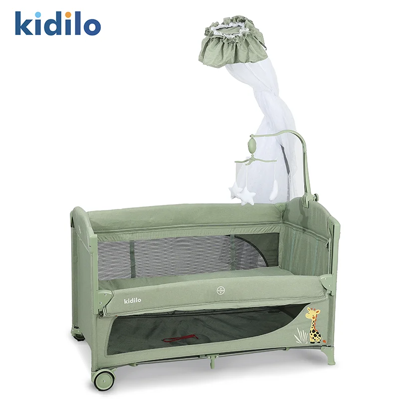 Newborn Foldable Portable Modern Kidilo Luxury Baby Crib, Convertible 3 in 1 Bedside Crib with Mosquito Net for Nursery T-704L