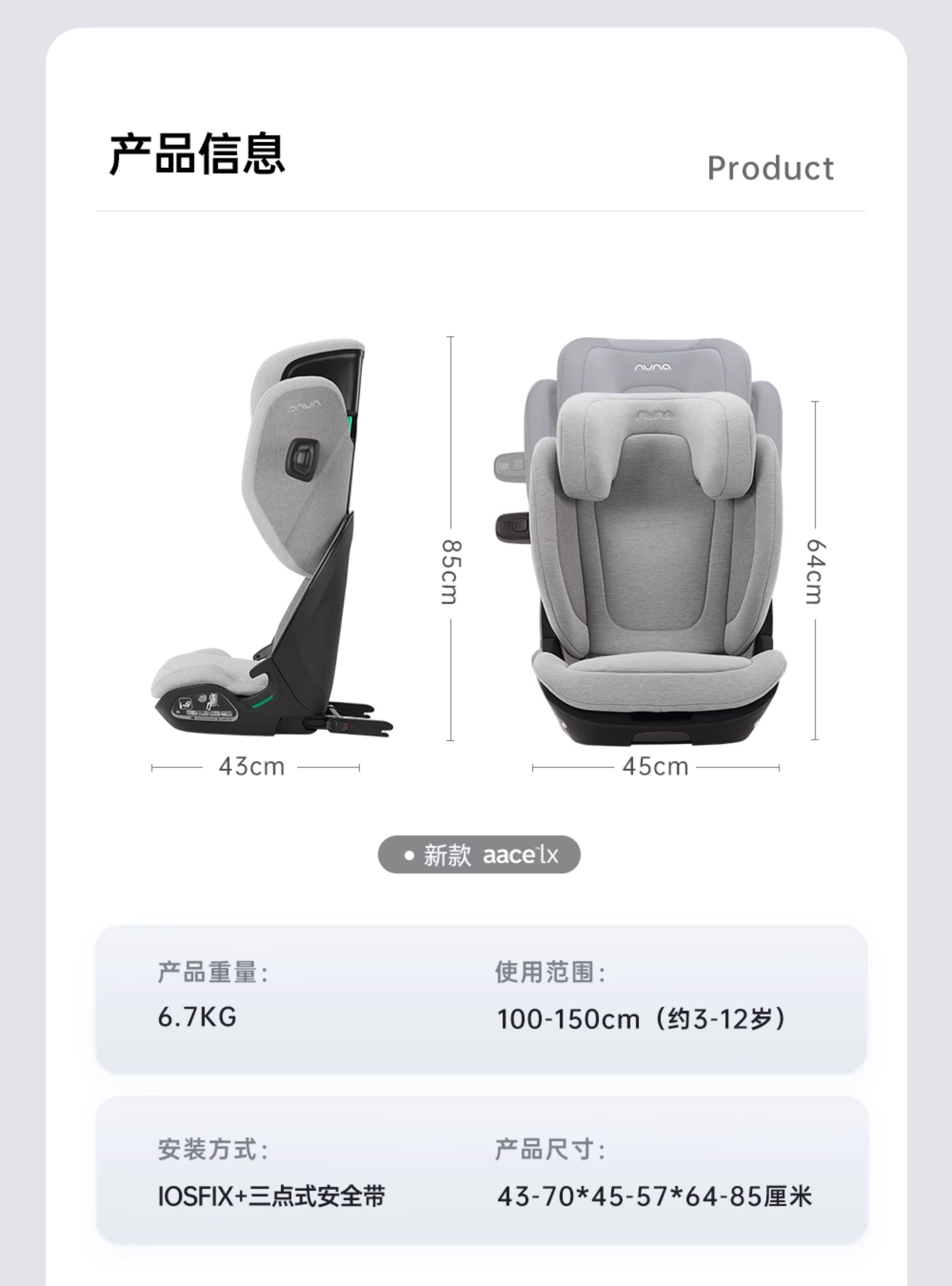NUNA大童安全座椅AACE LX機甲衛士兒童車載汽車安全座椅3-12歲