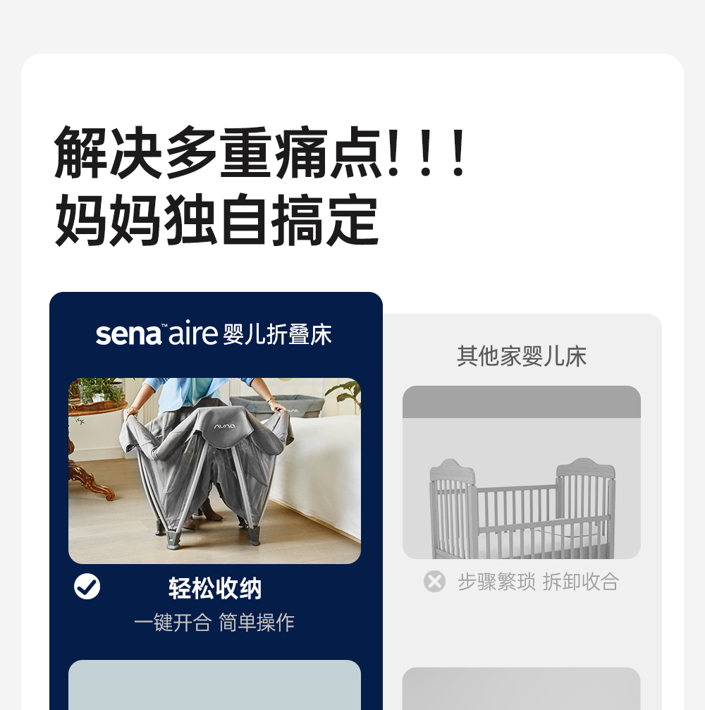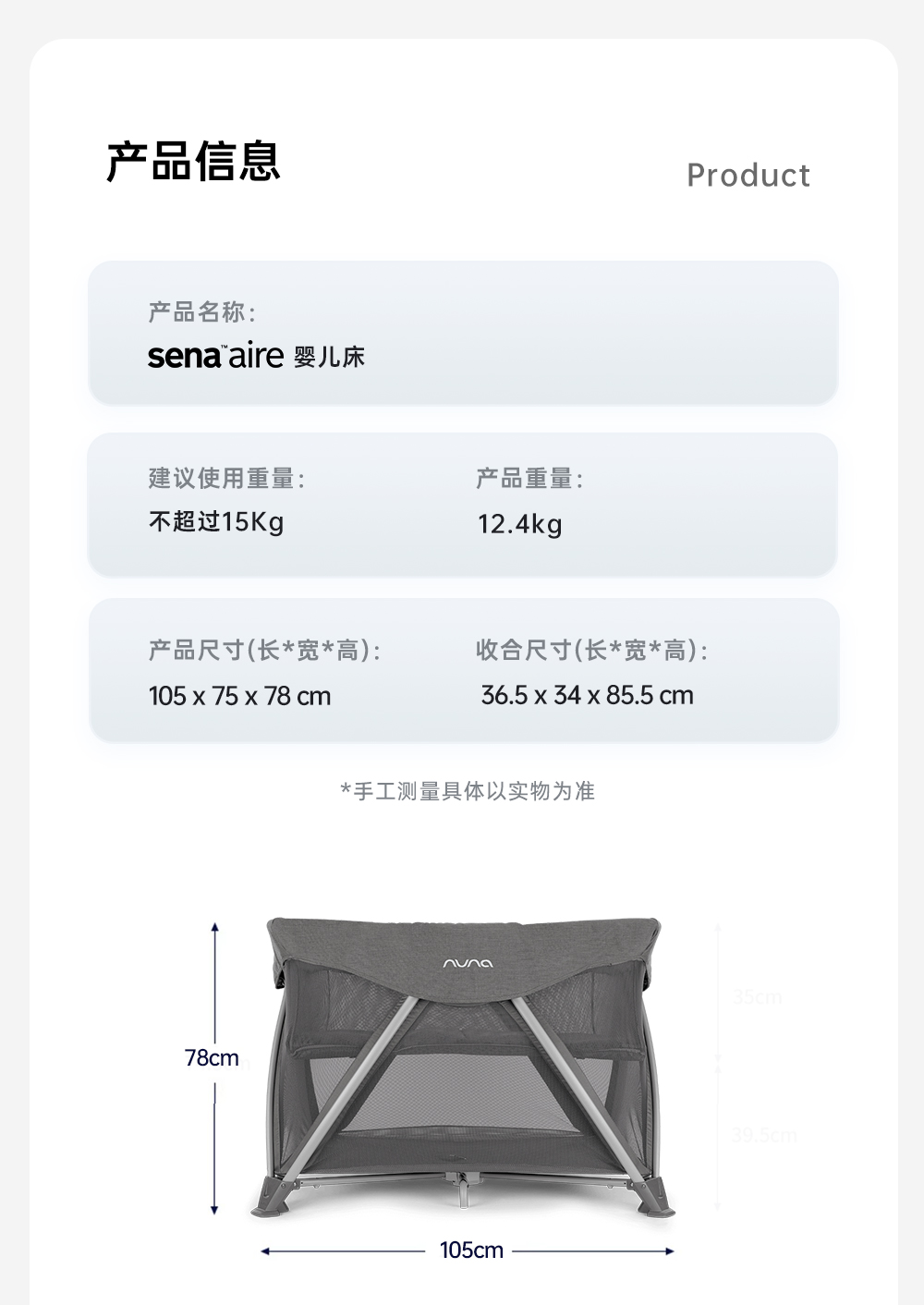 NUNA 嬰兒牀摺疊牀便攜牀遊戲牀多功能牀(帶牀墊)SENA aire森納