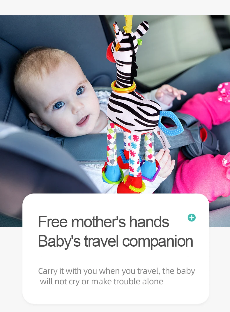 OEM Manufacturer Soft Plush Stuffed Donkey Giraffe Baby Sensory Crinkle Hanging Soothing Toy for Crib Car Seat Stroller