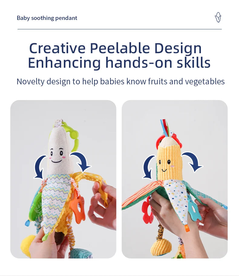 OEM ODM Soft Stuffed Baby Walker Trolley Toys Banana Corn Soothing Hanging Plush Toys