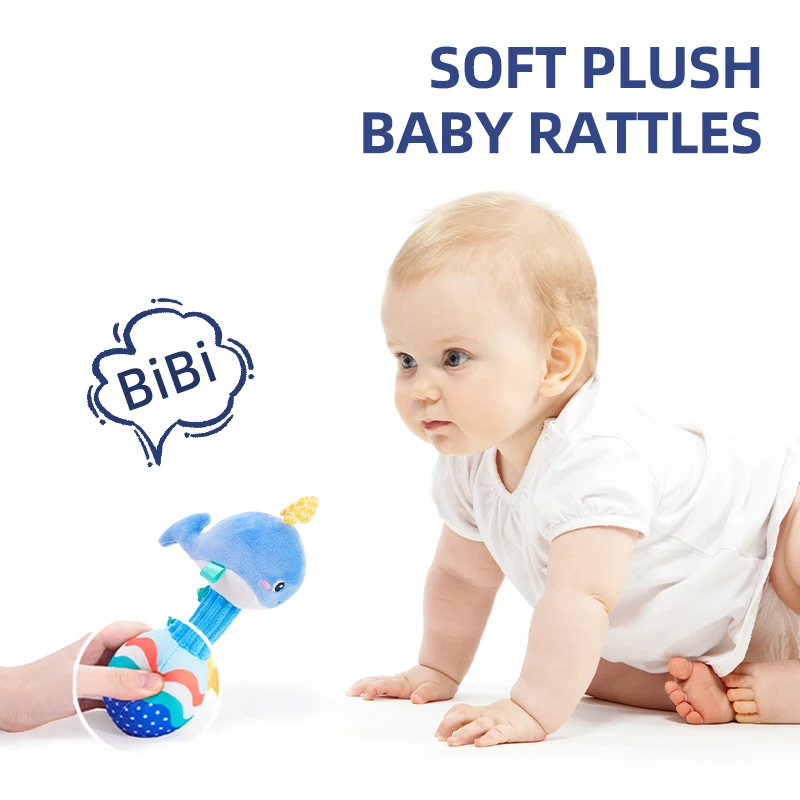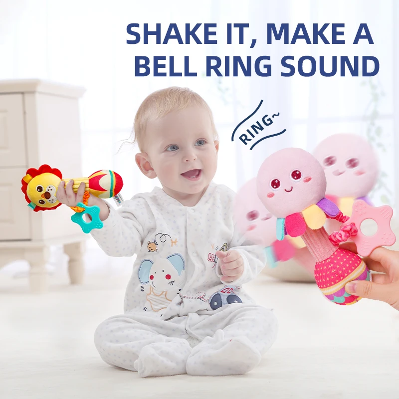 Soft Plush Baby Rattles Baby Sensory Hand Hammer Rattle Squeaker Sticks Animal Rattles Shaker for Kids