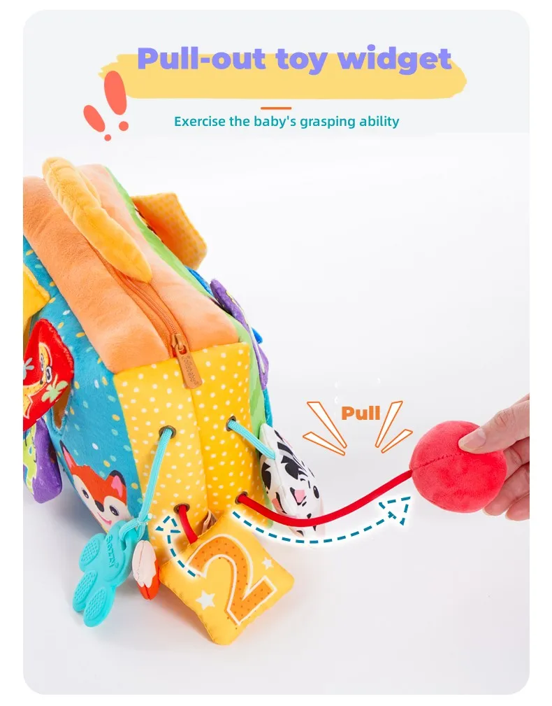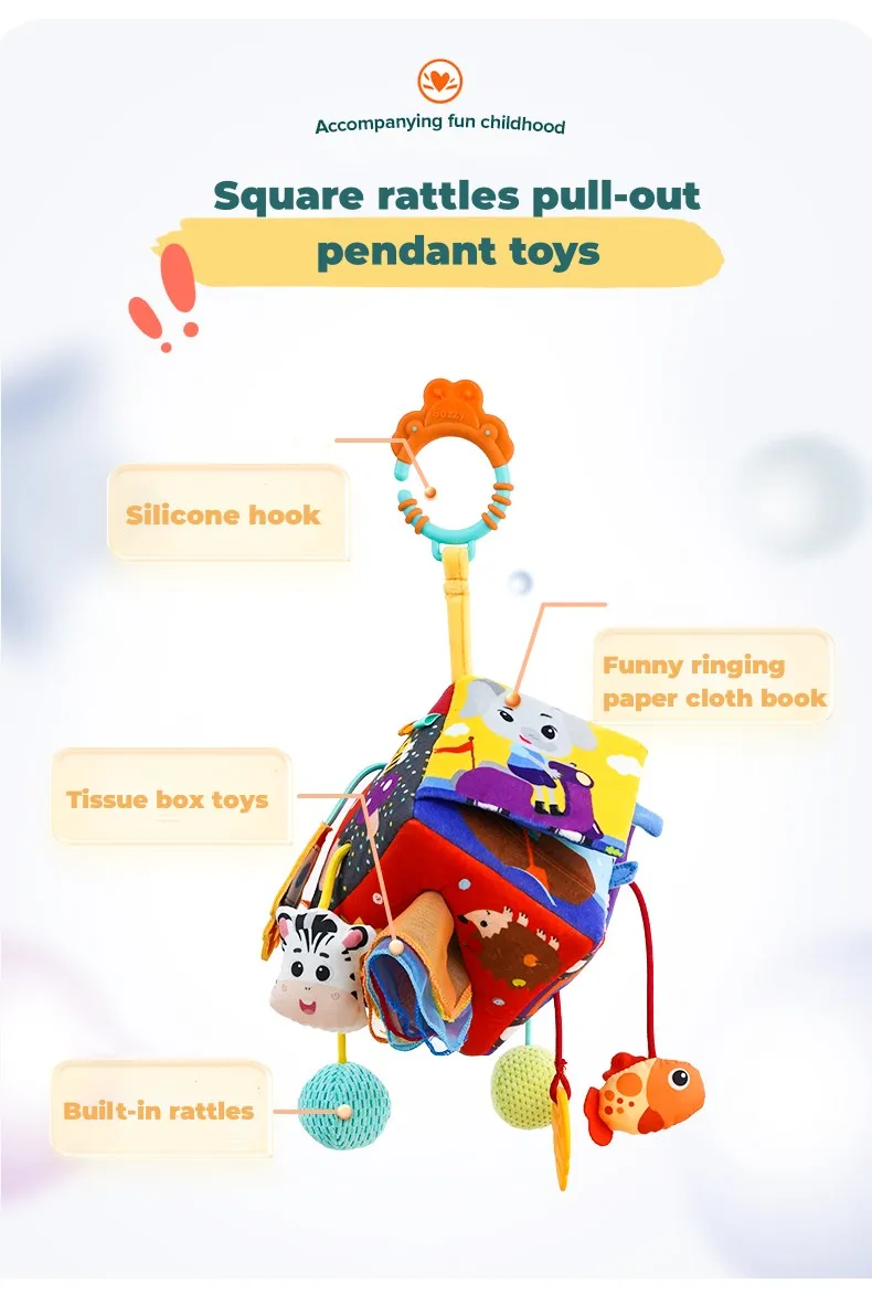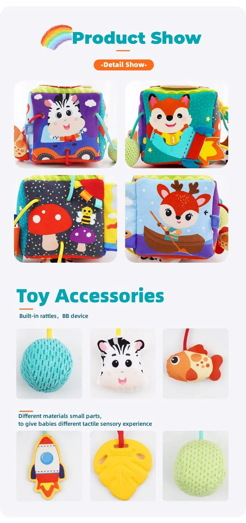 Sozzy Custom Sensory Education Baby Hanging Rattle Toys Soft Activity Plush Toy Montessori Pull String Toys