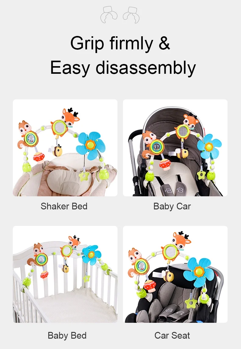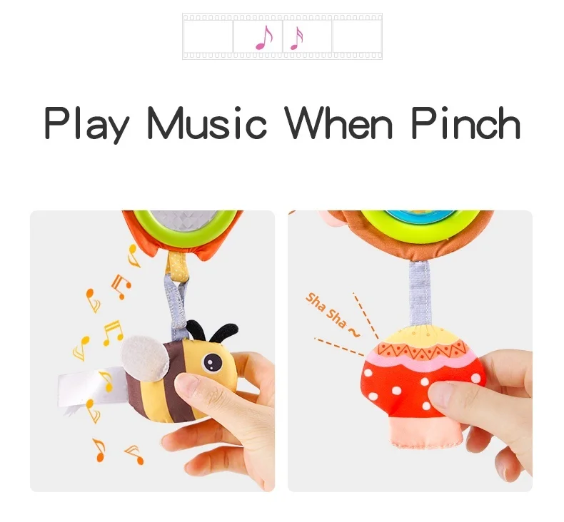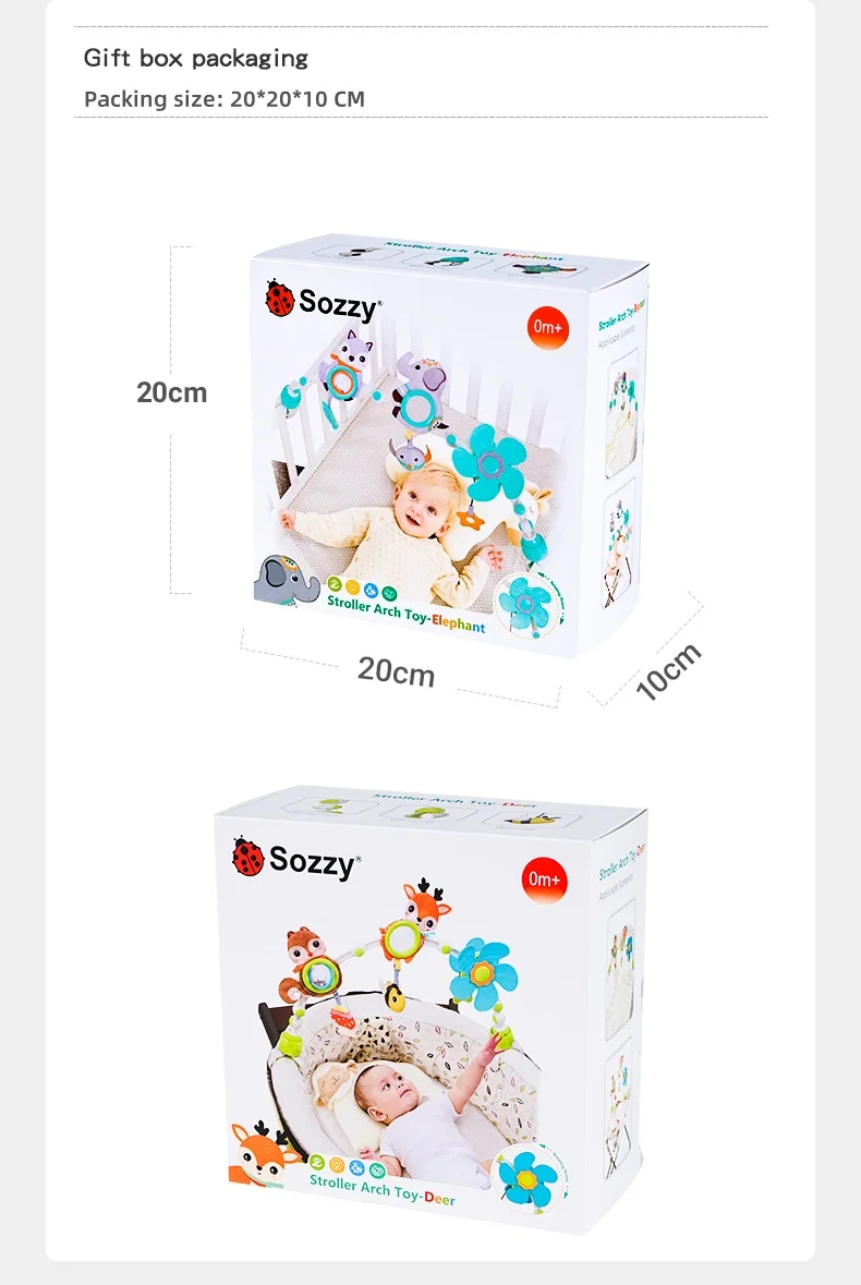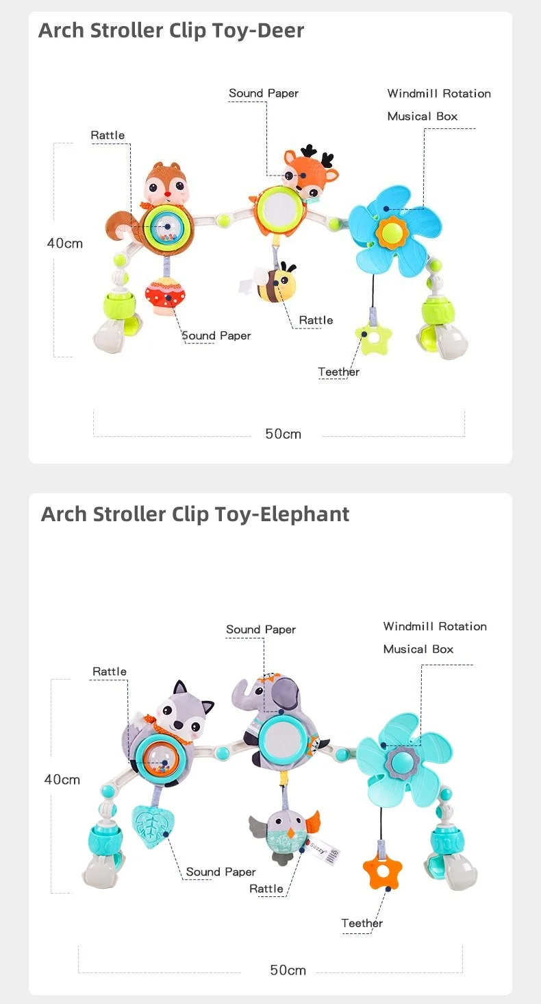 Sozzy Custom Sensory Elephant Baby Bed Hanging Toys Soft Musical Activity Arch Toys for Bassinet Crib Stroller Soothing Sensory