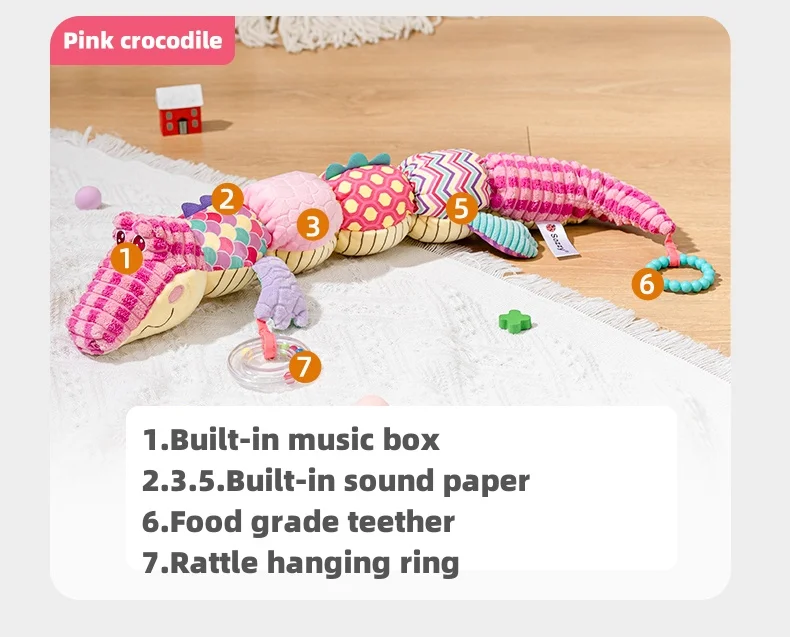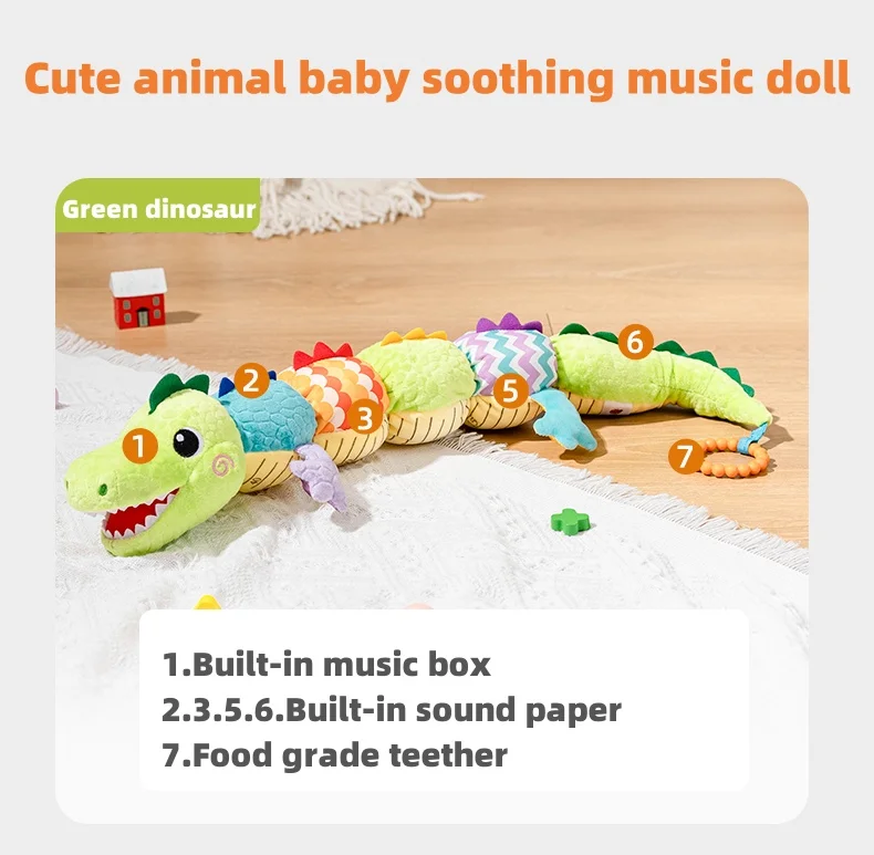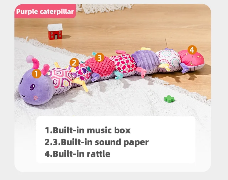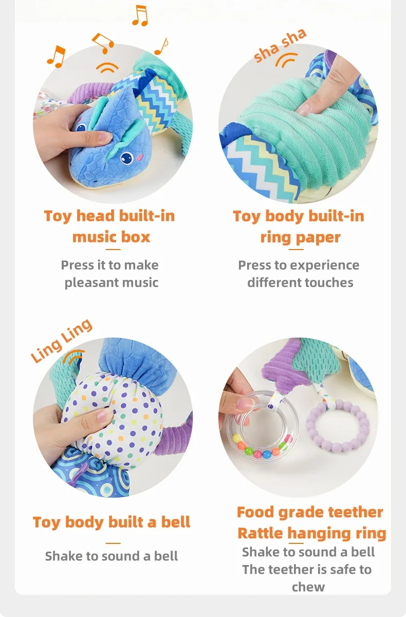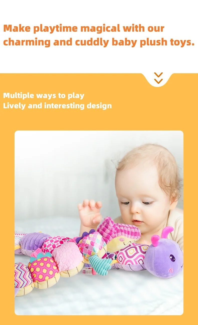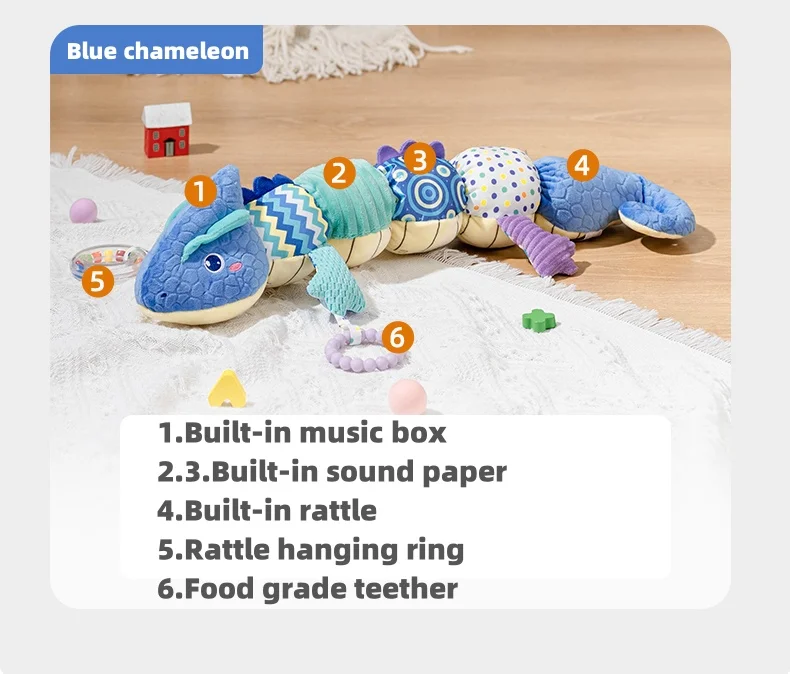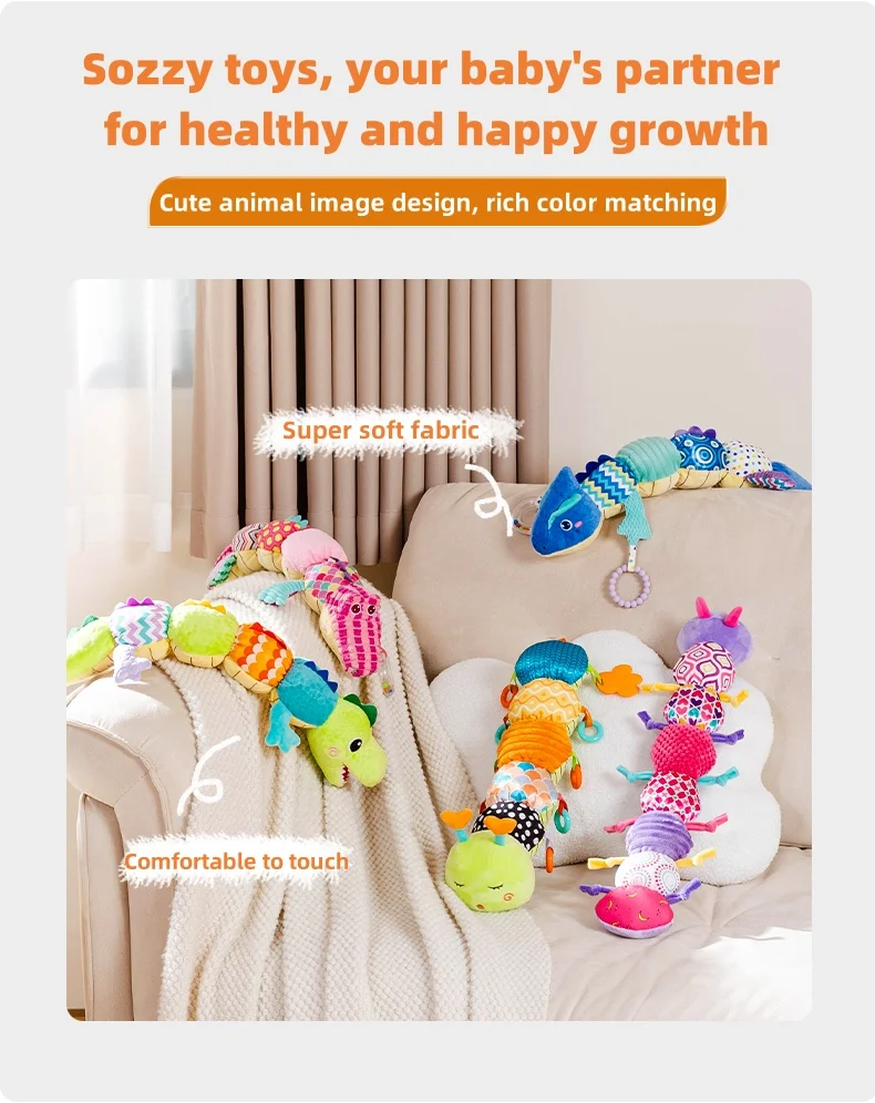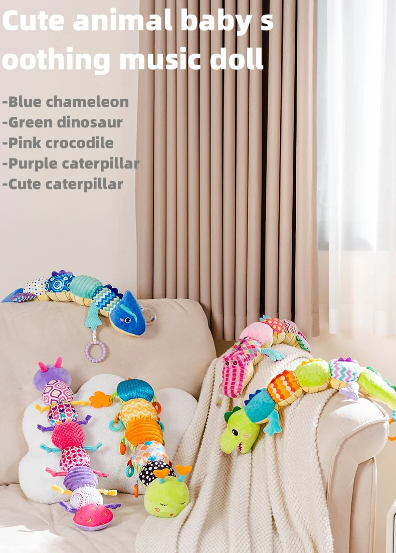 Sozzy High Quality Chameleon Caterpillar Soothing Soft Plush Rattles Tummy Time Toys Sensory Music Stuffed Animal Toy for Infant