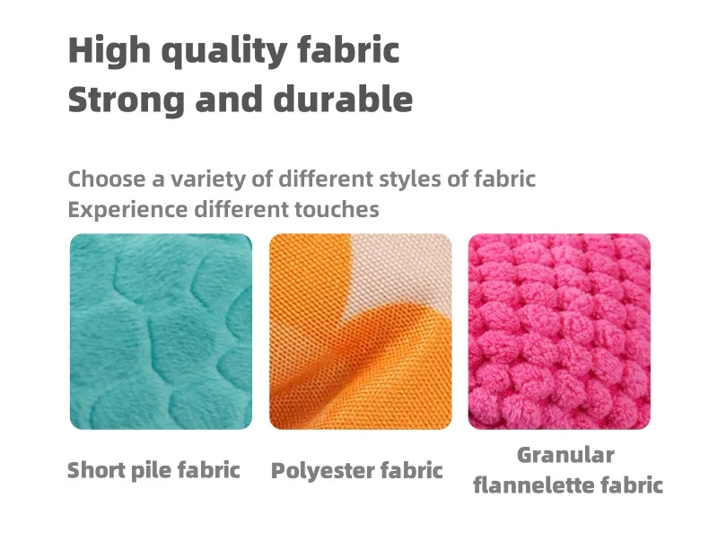 There are made by main Eco-friendly material Polyester fiber, Very Soft & Confortable. We also can recommend the fit material according to your design.