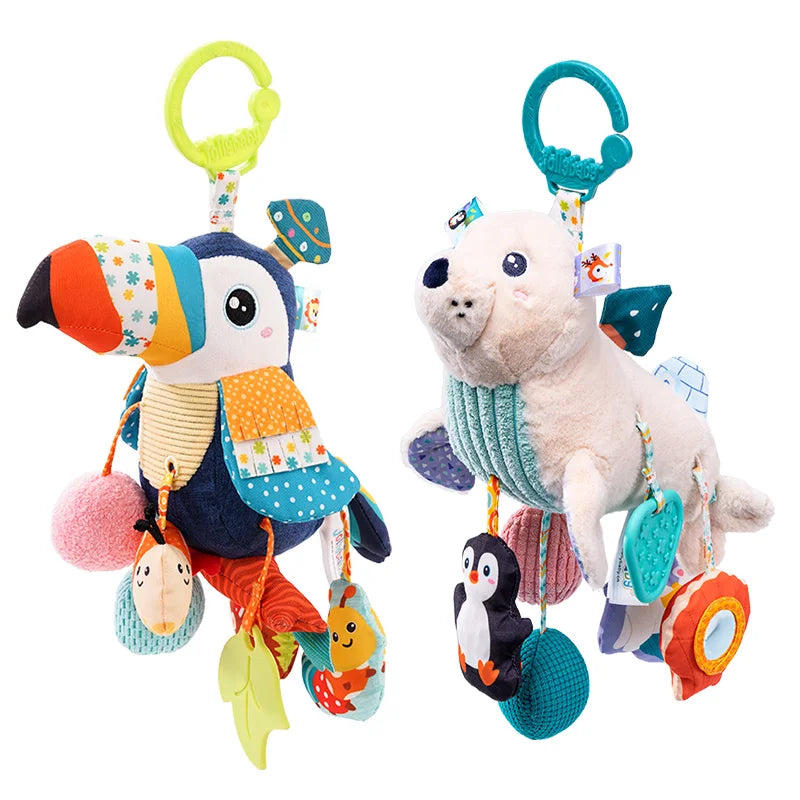 Wholesale Plush Animal Rattle Training Fine Motor Skill Montessori Pull String Toy Car Seat Stroller Hanging Toy