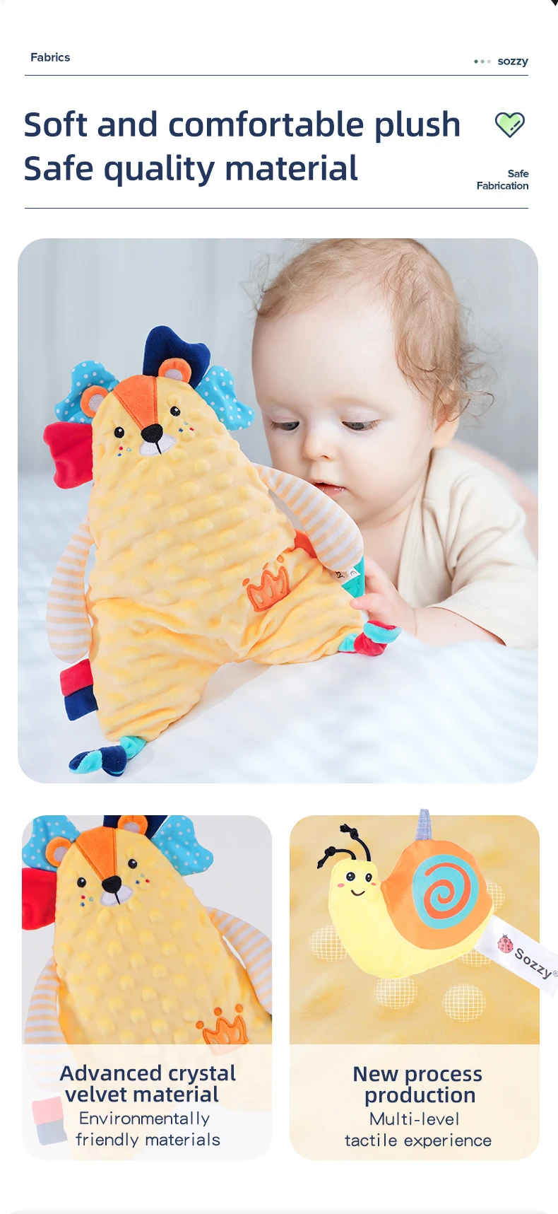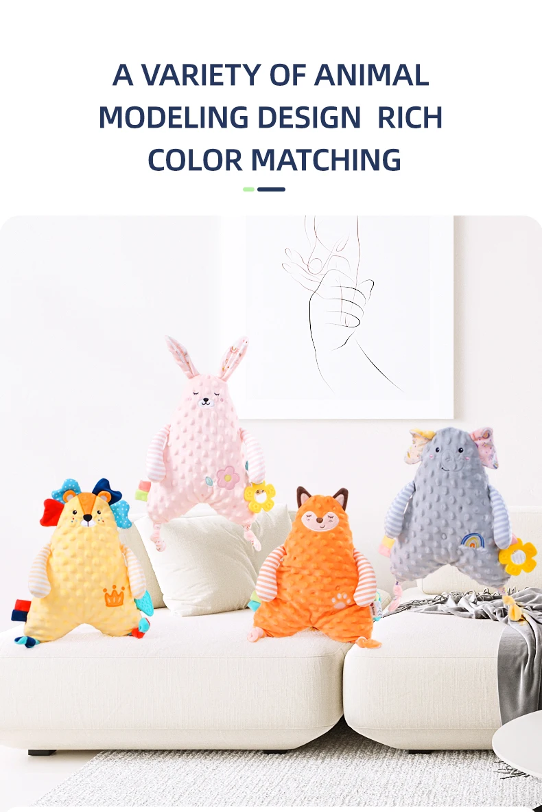 Wholesale Soft Stuffed lion Elephant Animal Plush Baby Security Blanket Comforter for Newborn Infant
